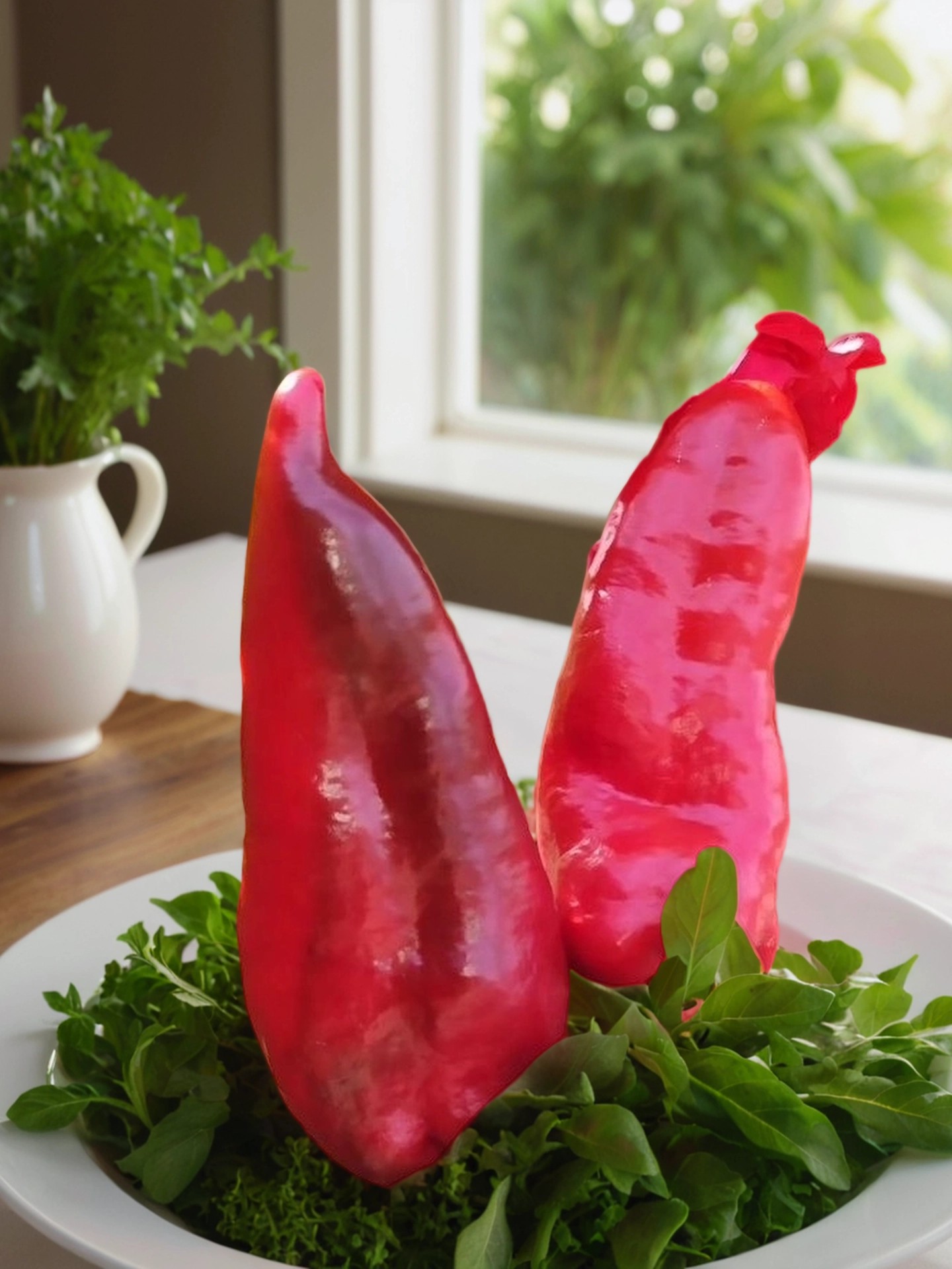 Вкус — нежный и сладкий, идеально подходит для свежих салатов, запеченных овощей, соусов и маринадов. Благодаря толстостенной структуре плодов, они отлично подходят для консервирования и заготовок.
