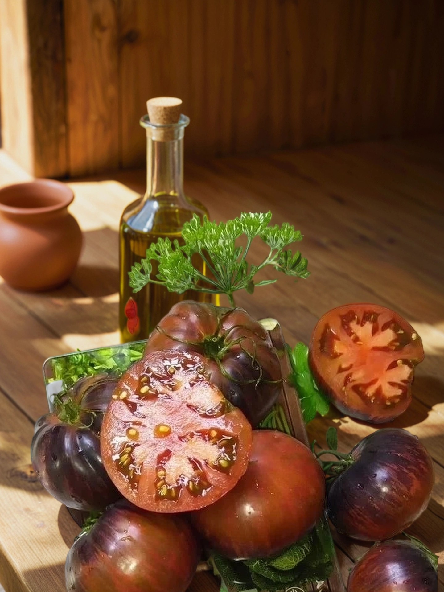 Мякоть — маслянистая, сочная, темно-вишневая, с легким сладким вкусом и насыщенным ароматом. Идеально подходит для употребления в свежем виде, а также для приготовления салатов, соусов, паст и закусок.