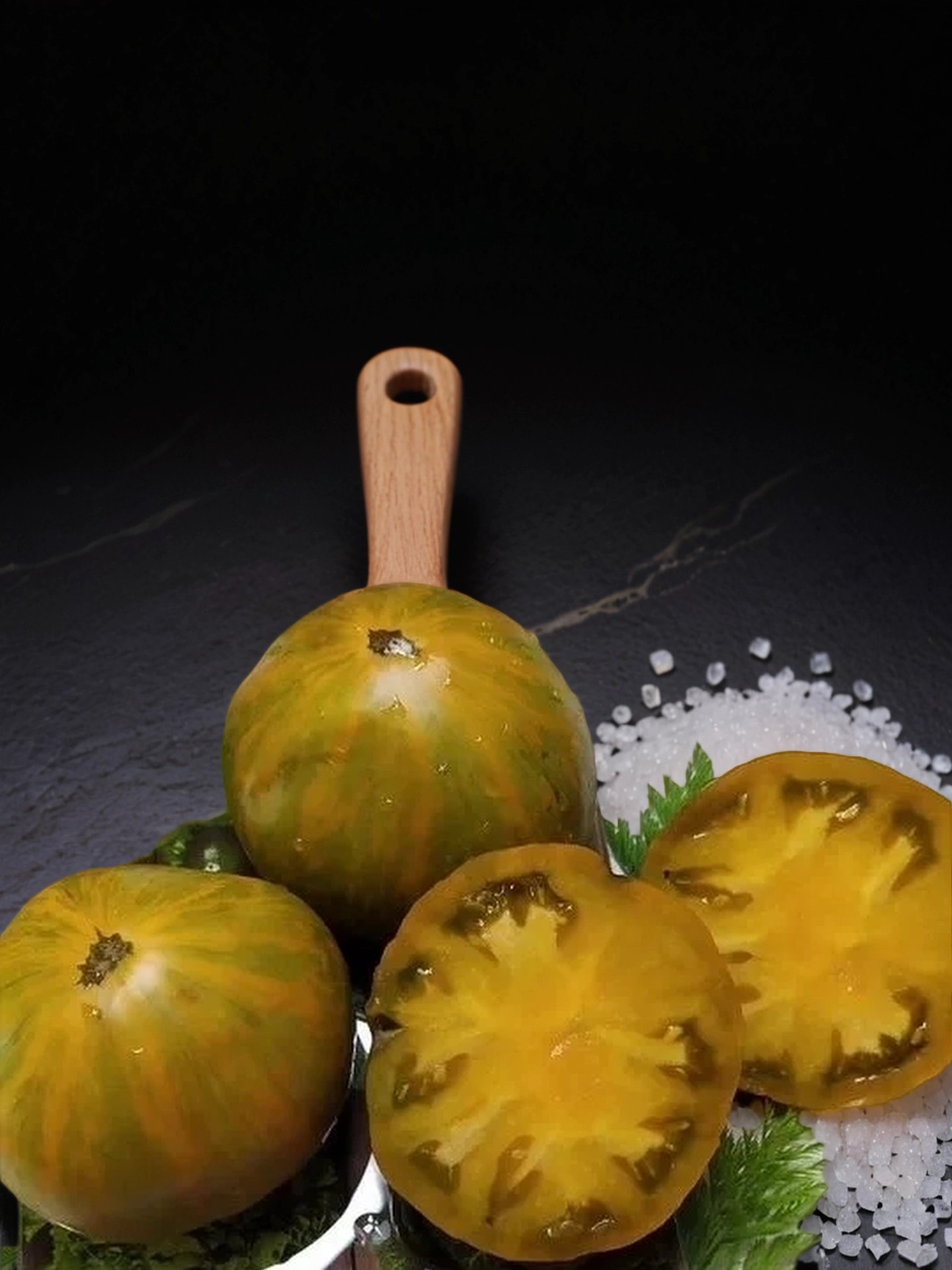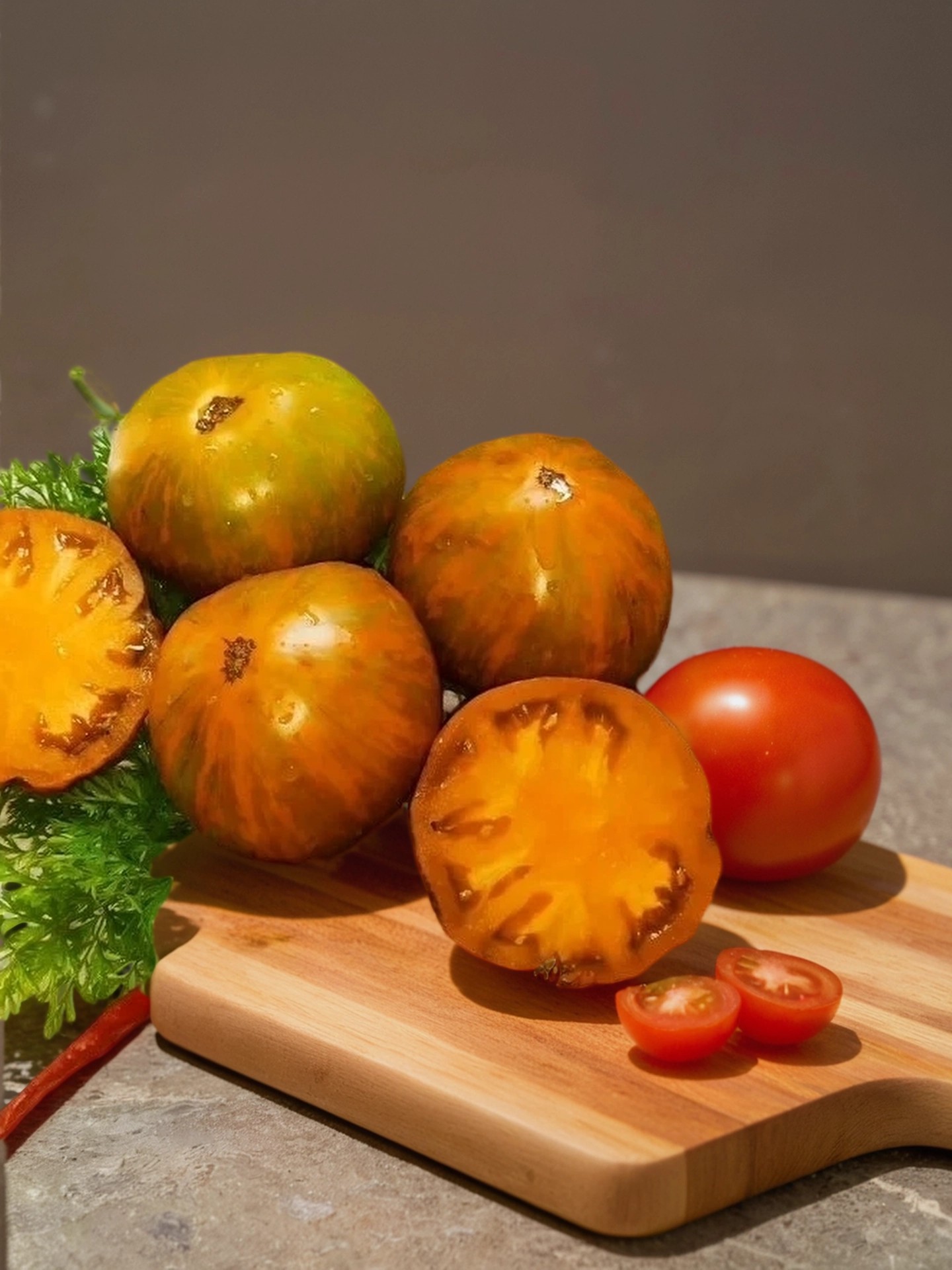 Вкус — насыщенный, сладкий с легкой кислинкой, а деликатесная ароматная мякоть делает эти томаты особенно ценными для любителей сочных и ароматных овощей. Они отлично подходят для свежего употребления, салатов, заготовок и десертов.